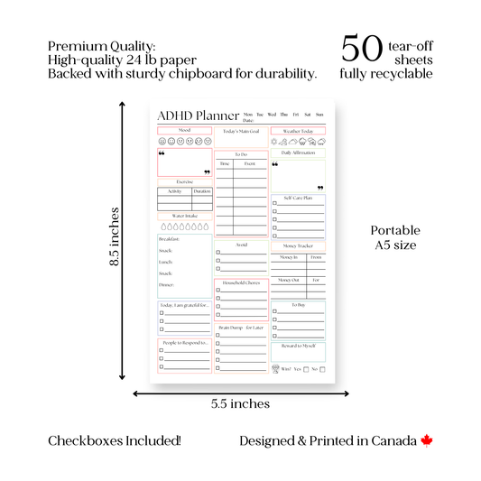 ADHD Daily Productivity Planner: 50 Page Tear-Off Notepad