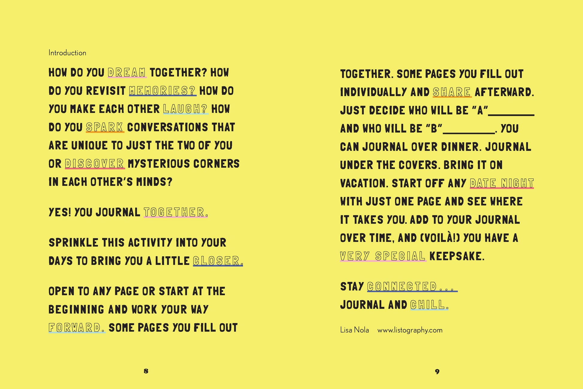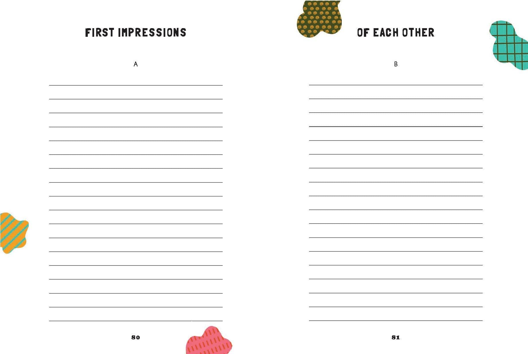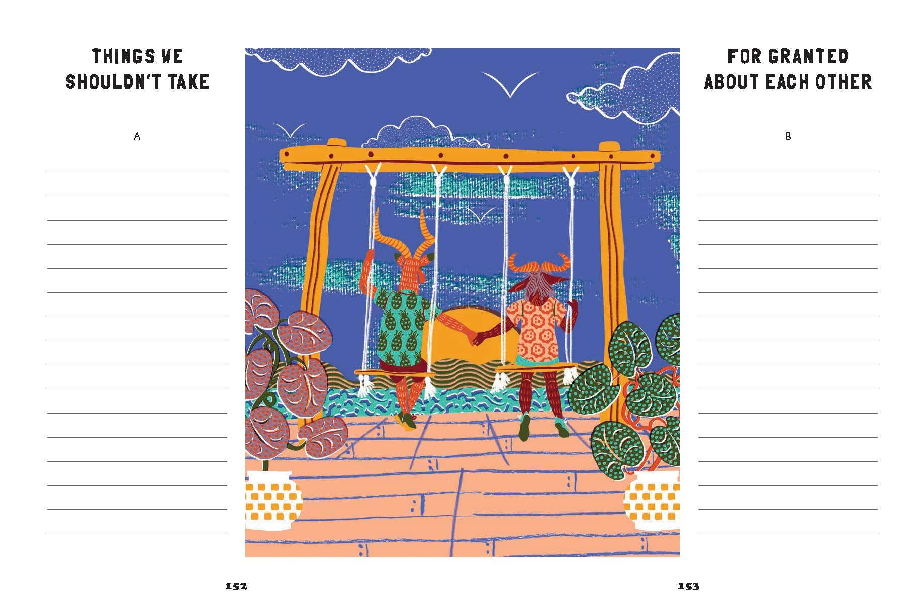 Taking time to journal together is a meaningful way for couples to connect. Designed to spark conversation and intimacy, this illustrated journal features over 75 prompts about your past, present, and future as a couple. From favorite memories" and "what I love about you" to "first impressions of each other" and "things we agree to disagree on, topics are thought-provoking, sweet, humorous, and honest. With a handful of activities and quizzes (drawing amateur portraits, playing Who's More Likely To?), Date Night In offers a fun and accessible way for you to reflect and dream together, and create a lasting and unique keepsake in the process.