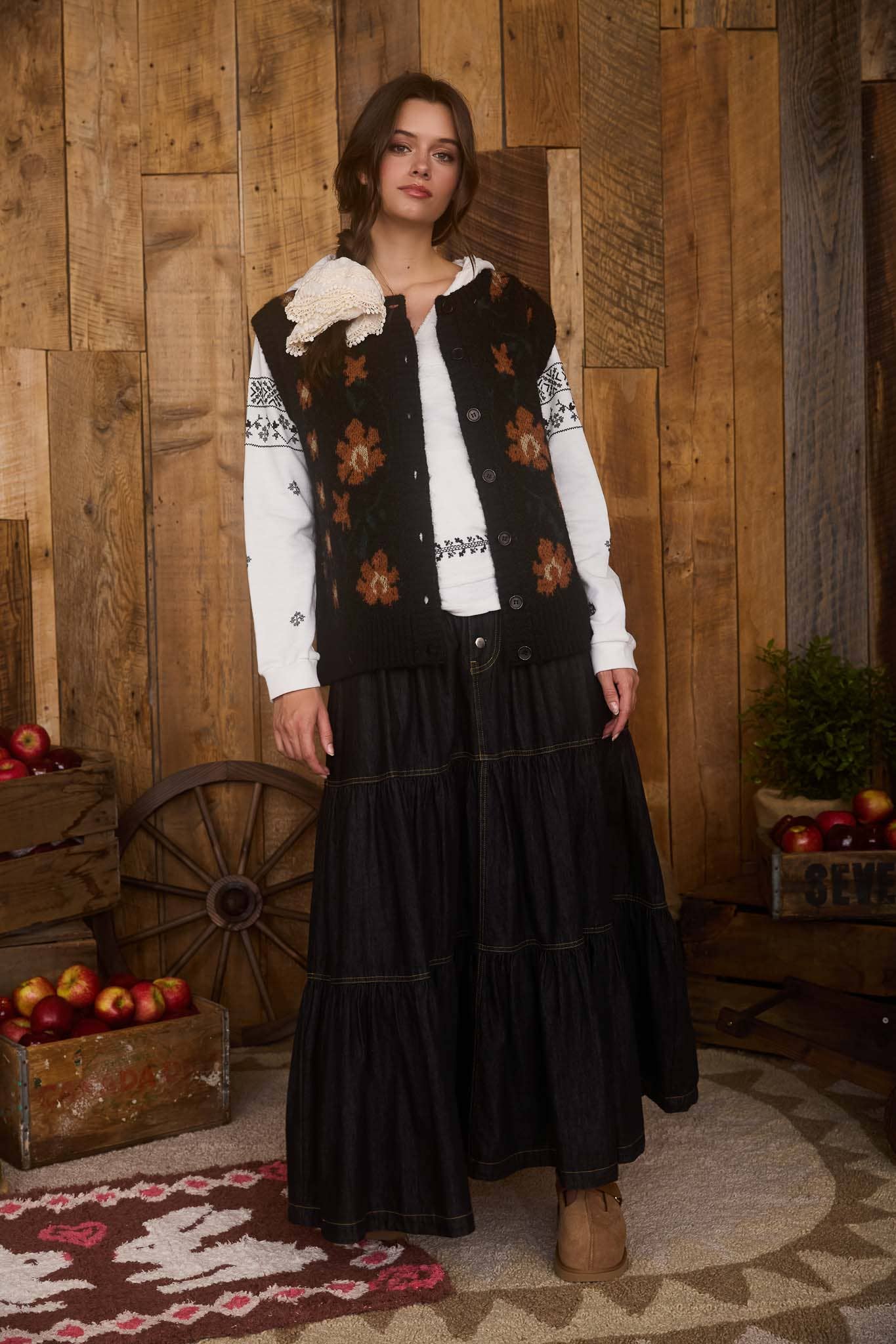 BUTTON DOWN ROUND NECKLINE SLEEVELESS DROP SHOULDER RELAXED FIT FLORAL PATTERN KNIT SWEATER CARDIGAN SWEATER