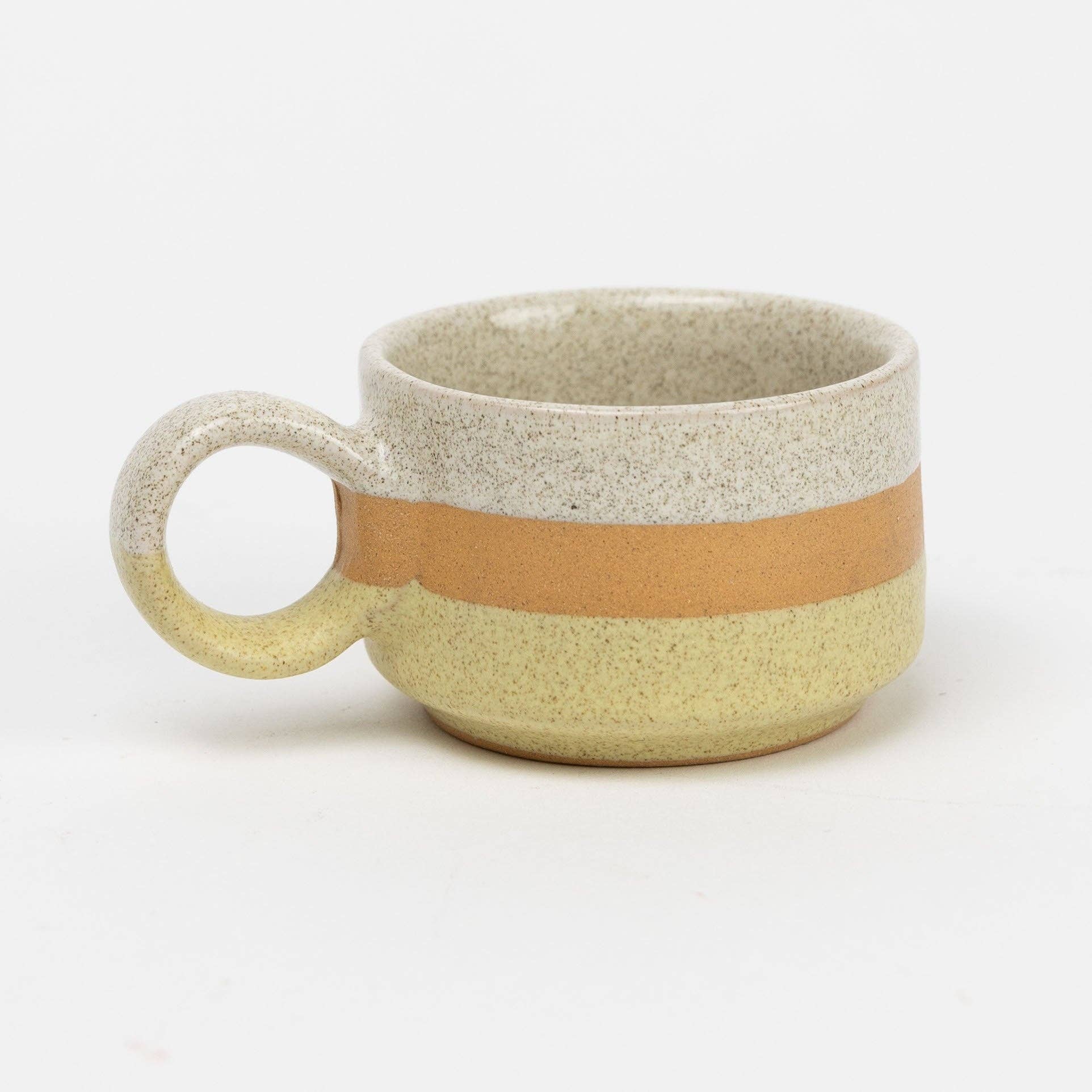 Add a touch of sweetness to your morning routine with the Kaphi Stacking Espresso Mug. This mug is handcrafted in Nepal and comes in an assortment of four vibrant colors: yellow, mint, blue, and dark blue.