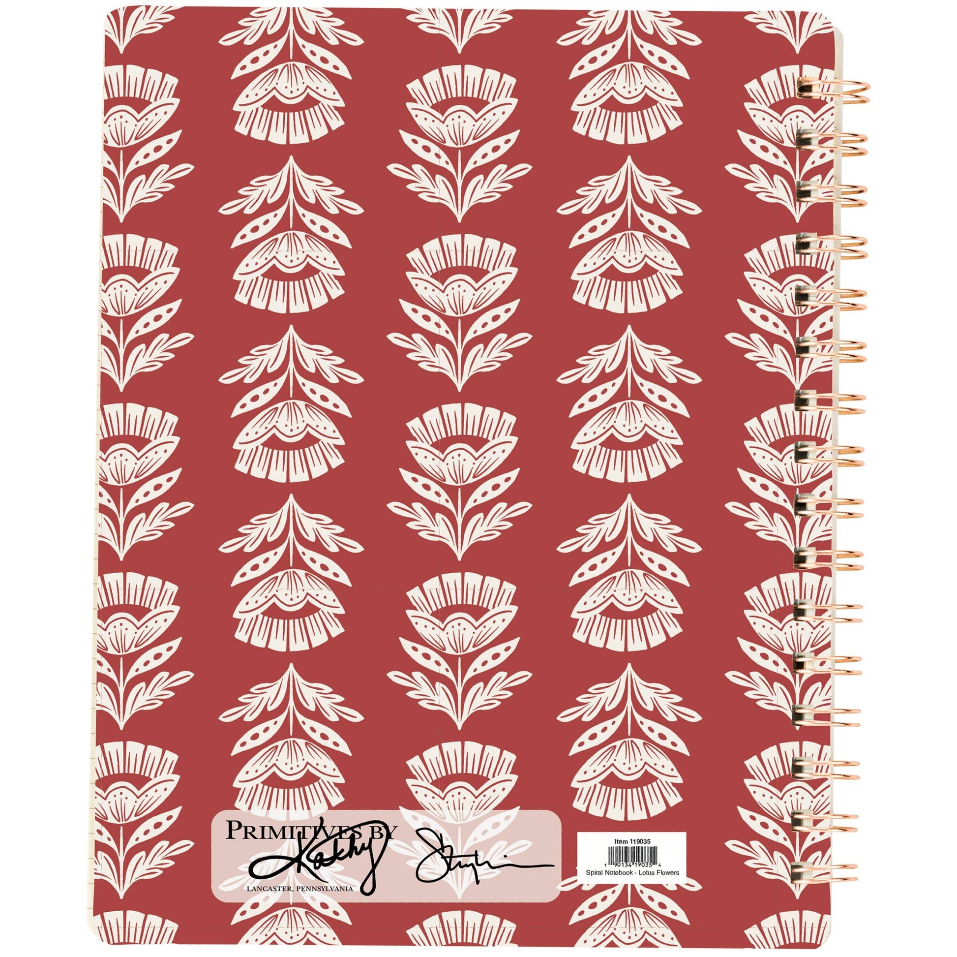 A double-sided spiral notebook from our Folk Art Collection displaying a calming hand illustrated design of red florals inspired by Scandinavian folk art. Back cover features coordinating red floral pattern. Our Red Folk Floral spiral notebook includes 120 lined pages. An inspirational everyday accessory that is also great for gifting.