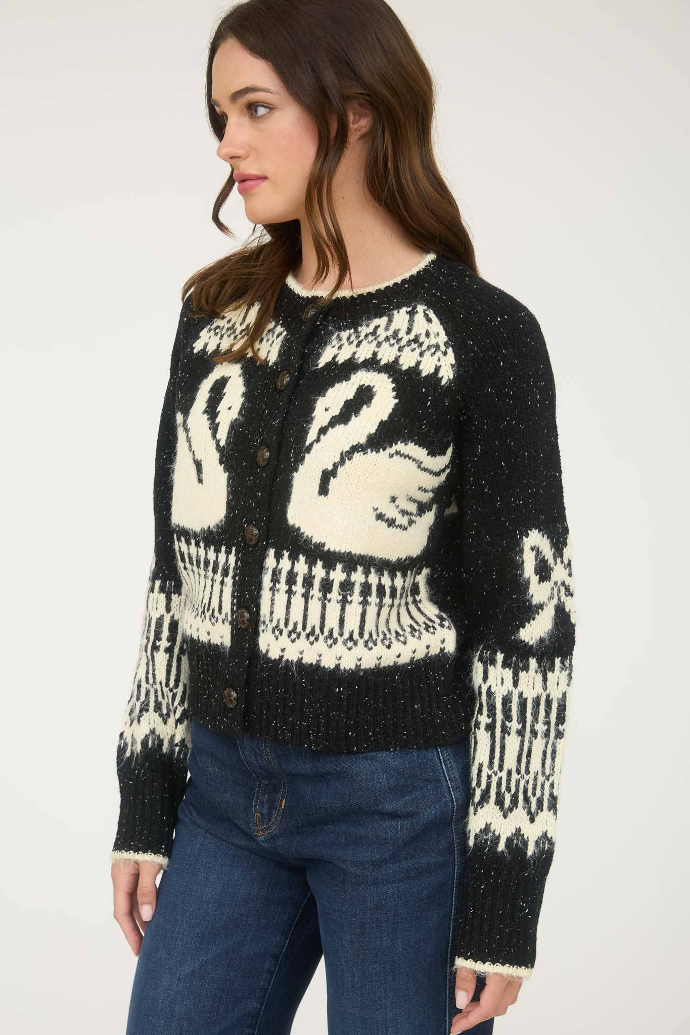 Swan Jacquard Button Down Cardigan
