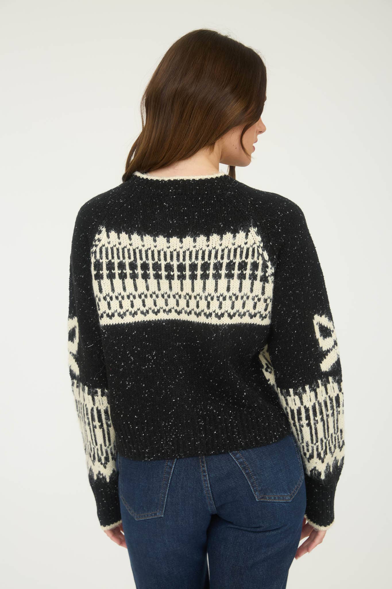 ROUND NECKLINE LONG SLEEVES BUTTON DOWN RIBBED TRIM SWAN JACQUARD PATTERN KNIT CARDIGAN SWEATER